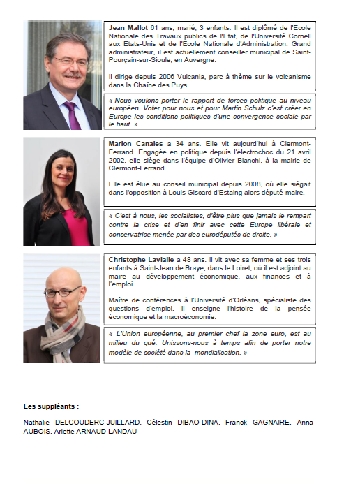 Européennes 2014 : les candidats, une équipe compétente et ambitieuse Publié le 5 mai 2014 par Les Socialistes d'Ussel Publicité